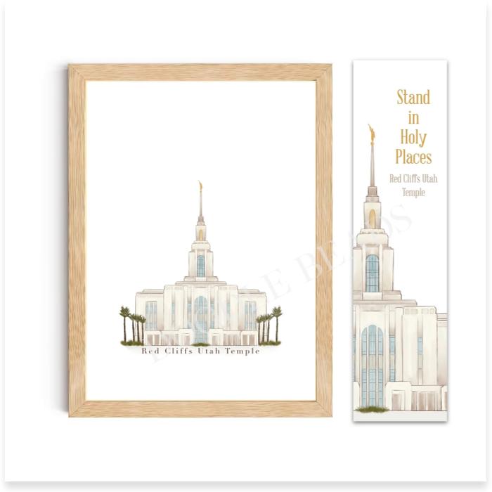 Red Cliffs Utah Temple Print, Watercolor Art, 8×10,5×7 & Bookmark