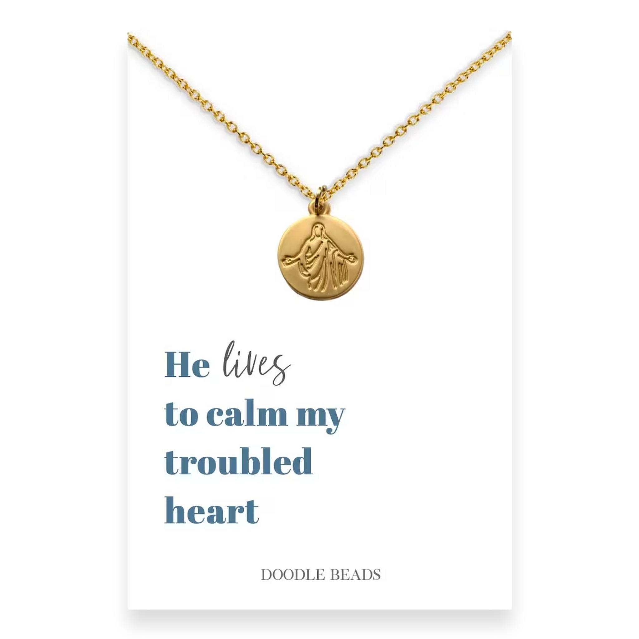 Christus Necklace, He Lives to Calm my Troubled Heart