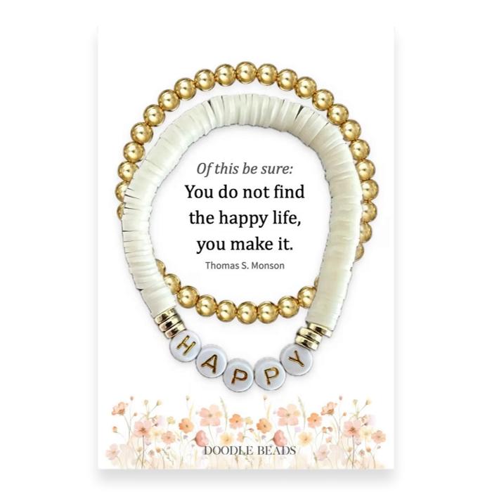 Graduation Happy Beaded Bracelet Set Gold