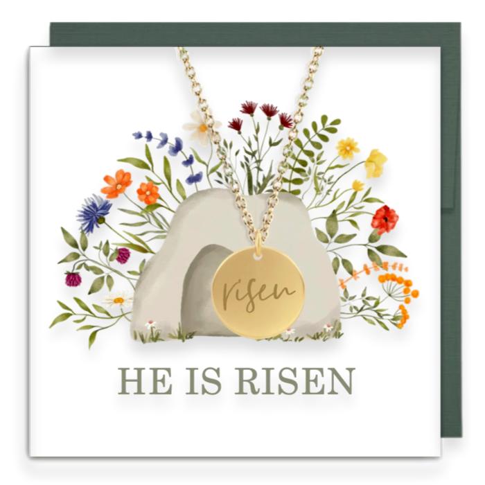 He is Risen Gold Disc Necklace With Empty Tomb Greeting Card
