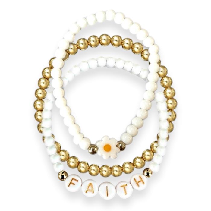 Faith Daisy Bead Stacking Bracelets, 3 Piece Set