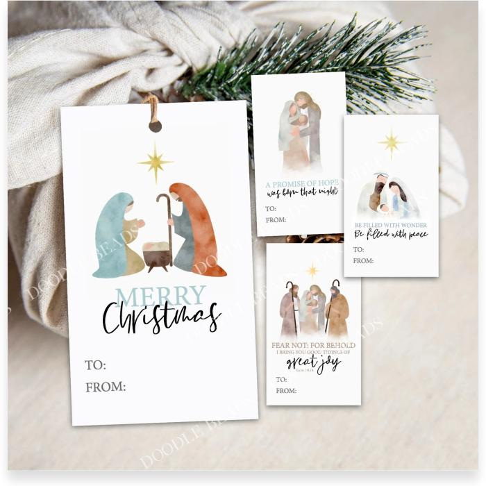 Printable Christmas Gift Tags, Nativity, Set of Four