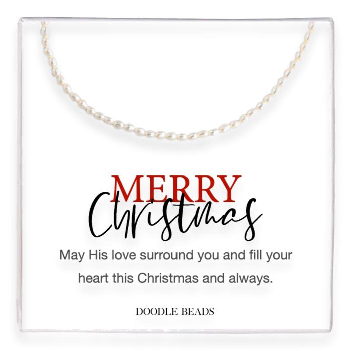 Beaded Rice Pearl Necklace In Gift Box, Merry Christmas