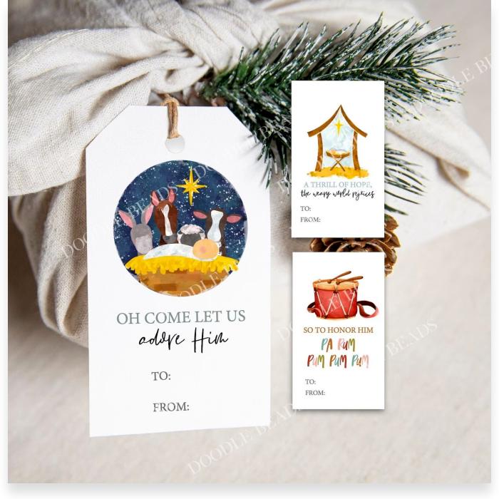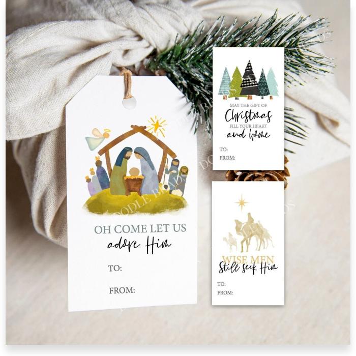 Set of 3 Printable Christmas Gift Tags, Religious Theme