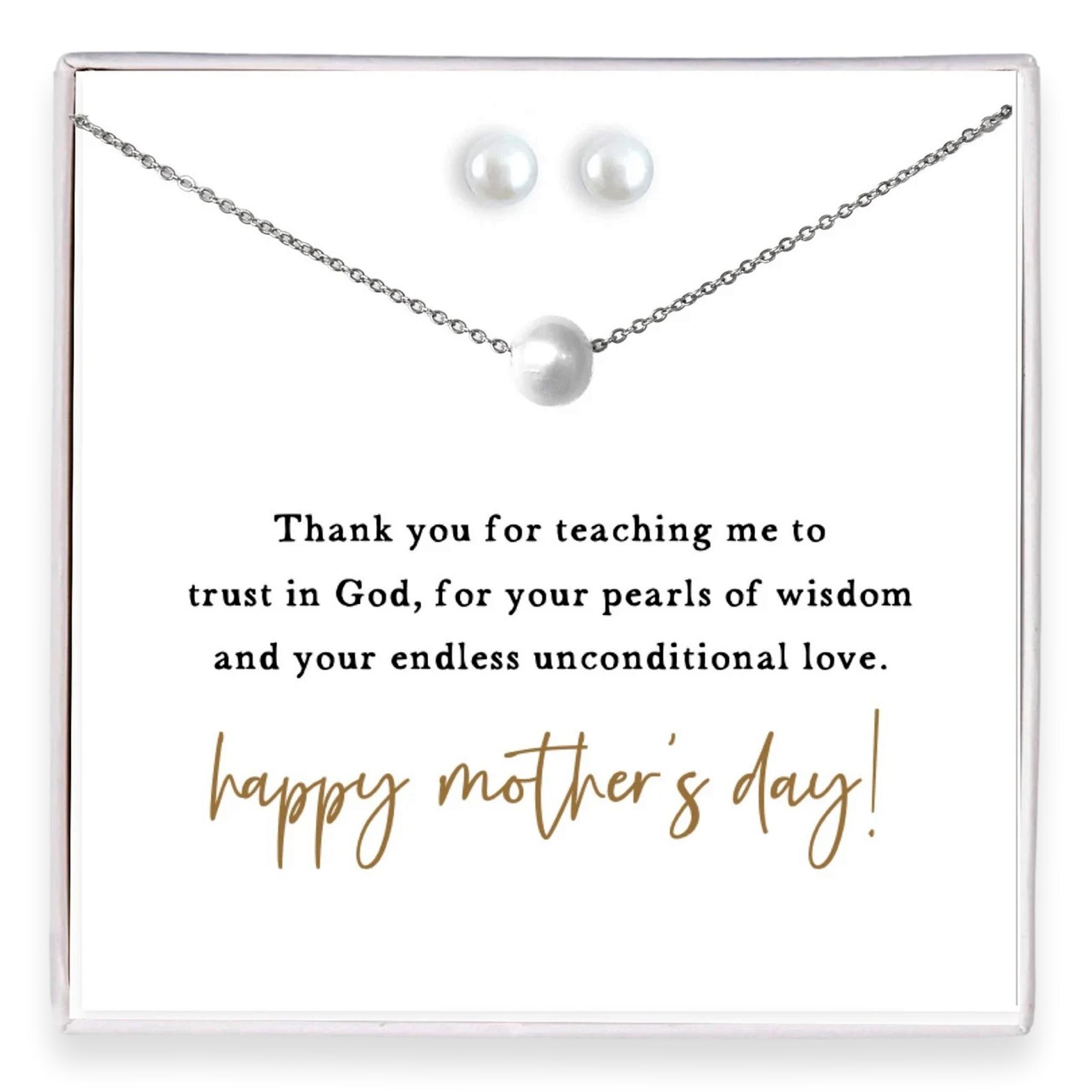 Happy Mother’s Day Boxed Floating Pearl Necklace & Matching Earrings Gift Set