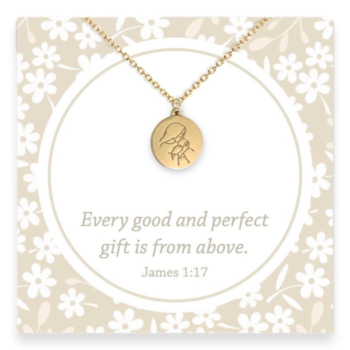 Mother and Baby Medallion Necklace, Every Good and Perfect Gift is From Above