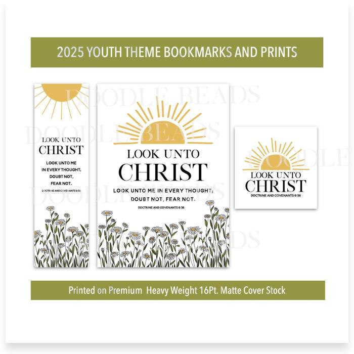 Look Unto Christ 2025 LDS Youth Theme, Bookmarks, 5×7 Prints and Tags, Daisy Sun Design