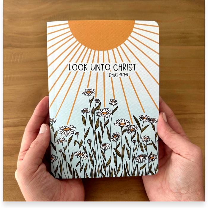 Look Unto Christ 2025 LDS Youth Theme Journal, 5×7, Cute Daisy Sun Design